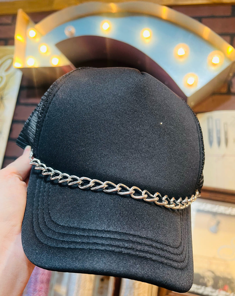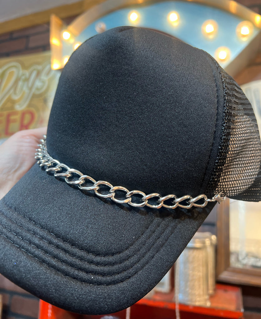 Expertly crafted with large link silver chains, this trucker hat chain is the perfect addition to elevate any outfit. Its sleek design adds a touch of luxury to any hat and its durable construction ensures it will last for years to come. Upgrade your style with this must-have accessory.