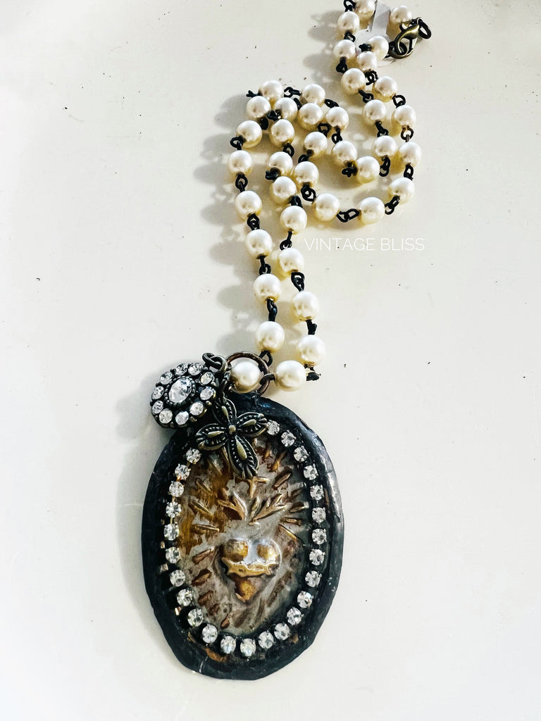 Sacred Heart Medallion Beaded Chain Necklace