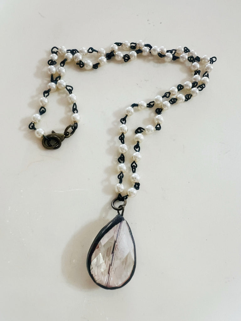 Soldered Crystal Drop Necklace Mini Pearl Beaded Chain